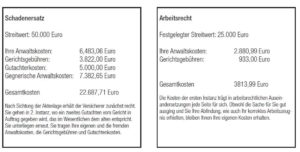 Die hier ausgewiesenen Zahlen sollen Ihnen lediglich zur groben Orientierung dienen. Sehen Sie es uns bitte nach, dass sie nicht jede einzelne Kostenpositition im Detail wiedergeben. Die Zahlen dienen lediglich der Veranschaulichung. Fazit: Für sein Recht zu kämpfen, geht immer mit einem enormen Kostenrisiko einher. Nur eine Rechtsschutzversicherung kann Ihnen dieses Risiko abnehmen.